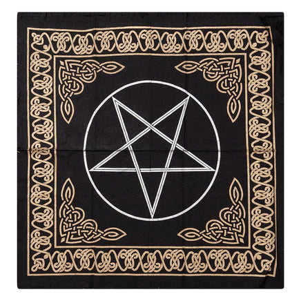 Black pentagram altar cloth, thinner fabric, gold & silver metallic printing