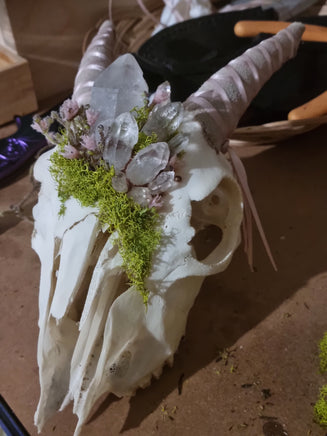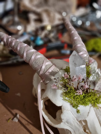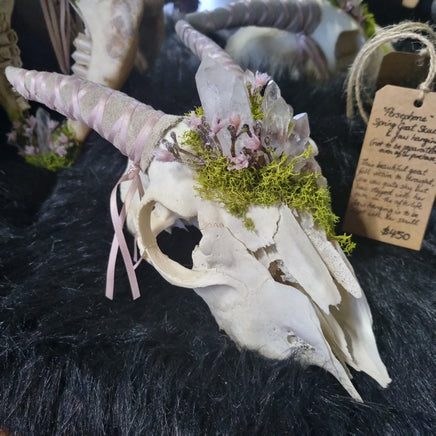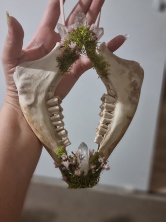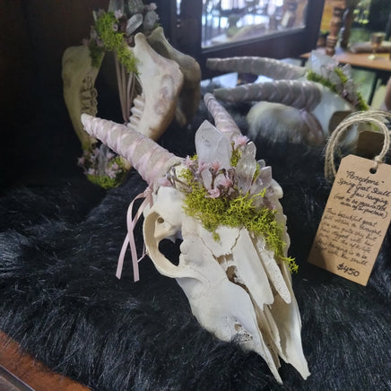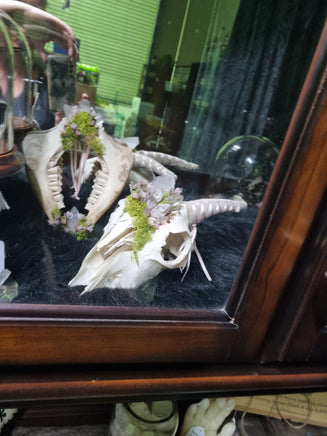 She wanted to be pretty like Spring, she also didn't want her jaw to be separated but while working on her it just didn't work as planned so we agreed to create something beautiful with her jaw to be kept with her skull. The two pieces can not be separated even once in their new home as she requested this.