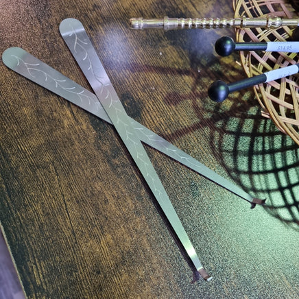 Silver coloured metal wax dipper, to snuff candles out safely simply hook the wick and dip into the melted wax. (be sure to lift it back up for next time)