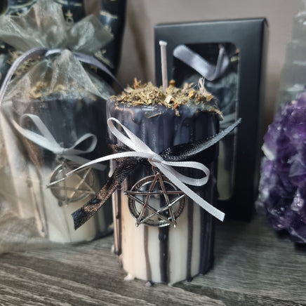 Each spell candle is charmed and blessed throughout the process, from blessing the ingredients, charming as mixed and poured and then again once finished off with decoration.