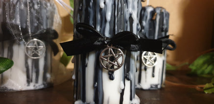 Our spell candles are handmade by us and made to order. They are made using 100% soy wax and each one will vary slightly in size and appearance.
