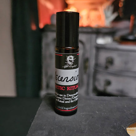 Ascension oil, please use caution and test for allergies prior to use on skin (generally a small amount is anointed on the third eye prior to astral/ascension to the Daemonic Plane).
