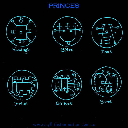 Hand drawn/painted Daemon Seals/Sigils on wooden discs for your Altar or Temple.
