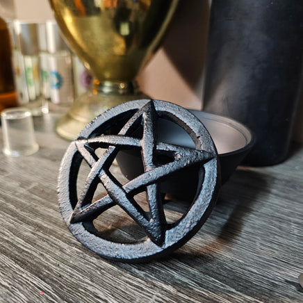 Features cut-out pentacle design in the lid.