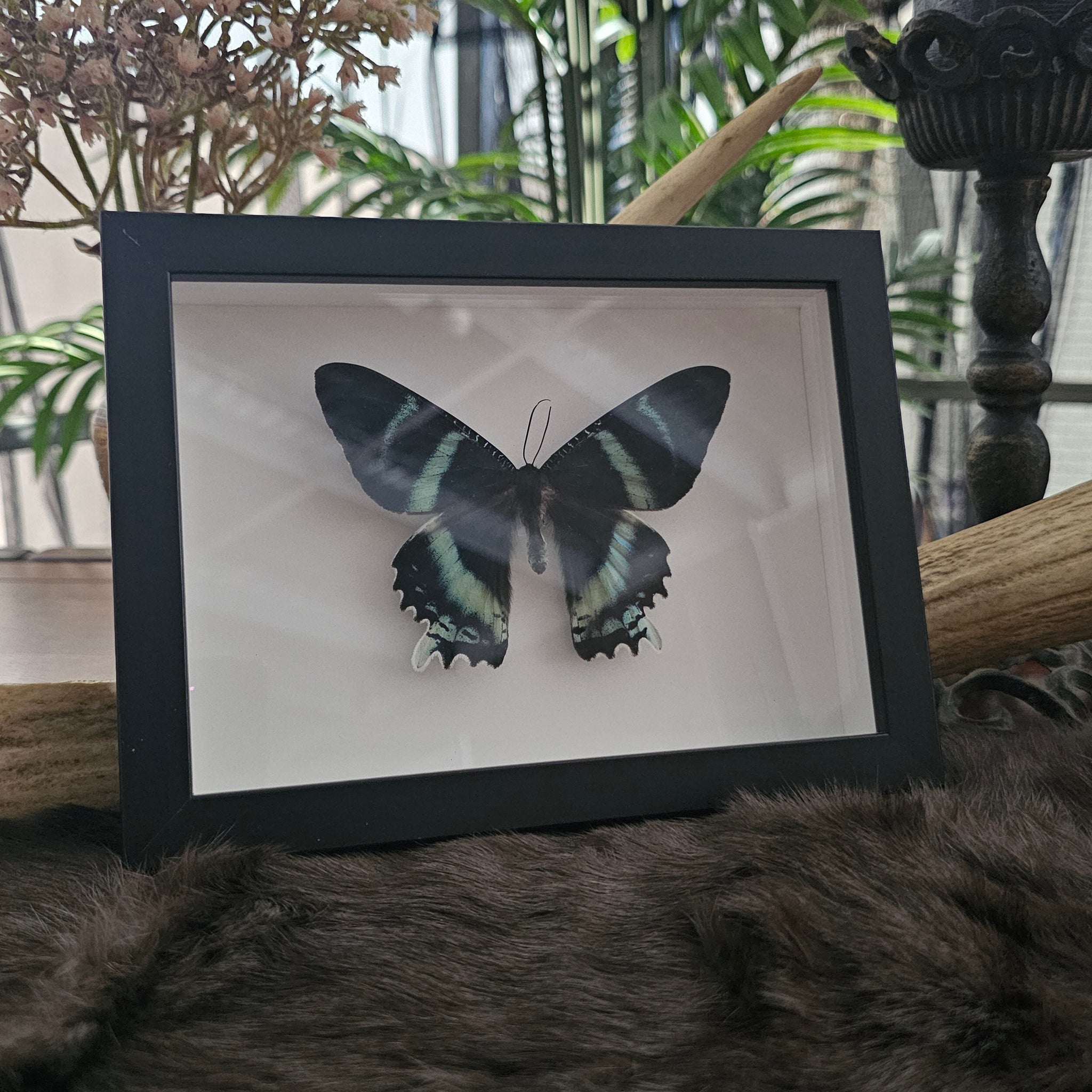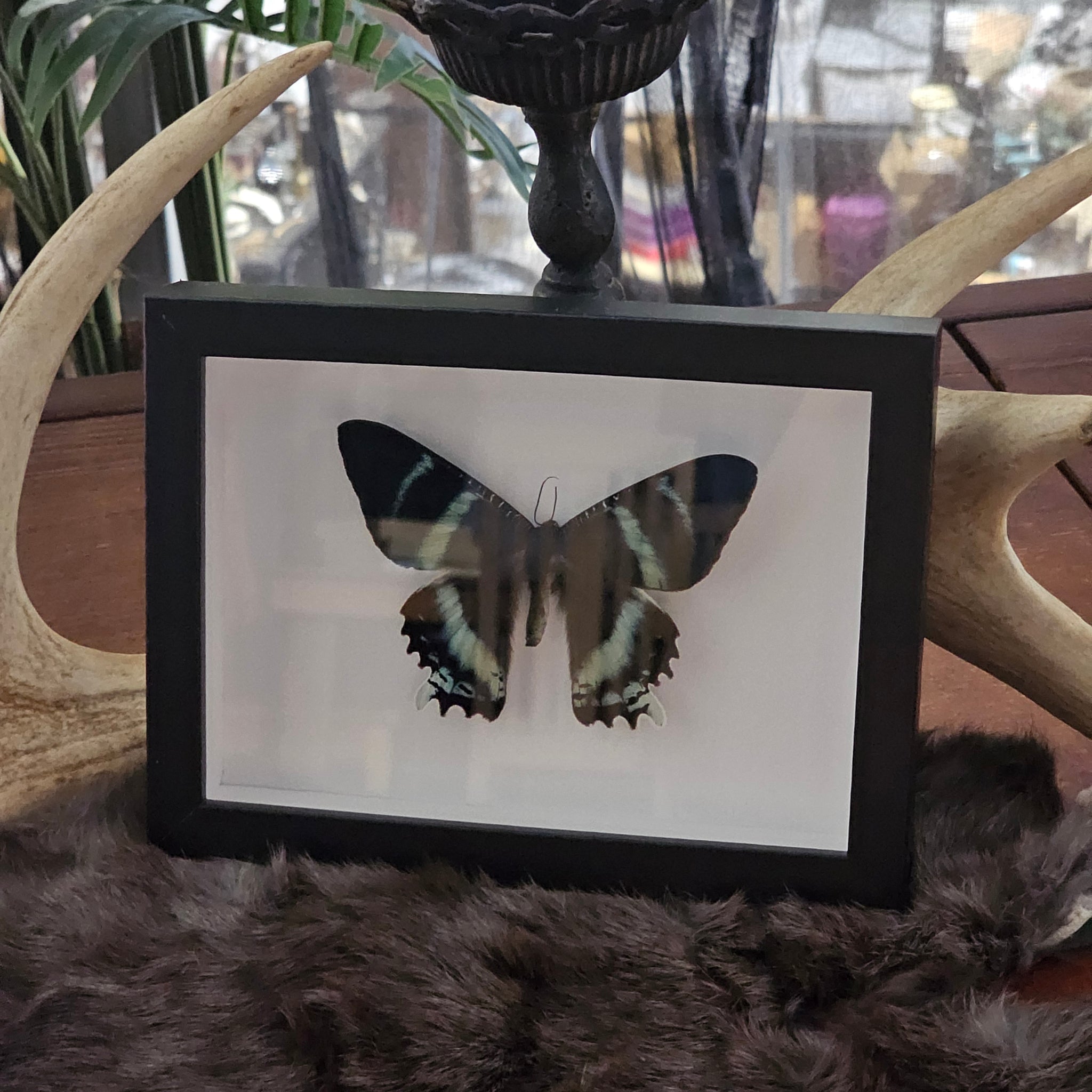 Zodiac Moth in black shadow box frame. (sorry about the photos! These are so much more beautiful in person)