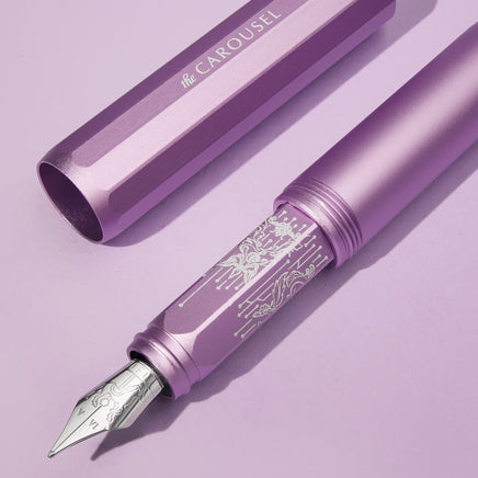 The Aurorealis Limited Edition Carousel Fountain Pen continues the story of our 2024 feature ink with an intricately etched grip, stepping into a world where artistry and technology unite in perfect harmony. Embrace the future of writing and art, and collect this precious limited edition before they’re gone.