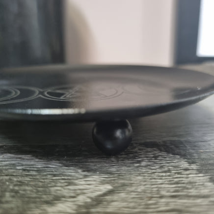 Metal (Iron?) Offering plate and/or Candle Plate with a triple moon and pentacle design on the plate. Has three little "feet" on the base.